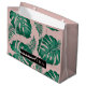 Tropical Pink & Green Palm Leaves Pattern & Name Large Gift Bag