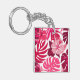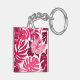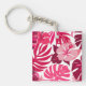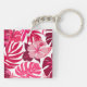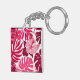 Tropical Pink Hibiscus and Monstera Leaves Pattern Keychain
