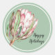 Tropical Pink Protea Floral on Mint Classic Round Sticker
