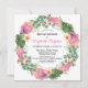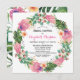 This tropical beach bridal shower invitation features and elegant tropical watercolor floral wreath with a tropical King Protea flower, pink plumeria, and greenery, in shades of elements of pink, green, and purple on a white background and trendy hand lettered script calligraphy. Back of the card features your wedding website or social media information. Perfect for the tropical beach wedding venue in Florida, Hawaii, the Caribbean, Mexico, or any wedding taking place in the tropics. Coordinating items available in my Tropical Beach Pink Protea Wedding collection in my Zazzle store: