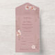 Warm pink and rosegold metallic filigree florals. Tracery of florals are matched with delicate watercolor hibiscus and plumeria. Flowers painted in feminine pink and beige colours. Typography is elegant in burgundy tone.