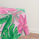 Tropical Pink White Flowers Palm Leaves Preppy Tablecloth