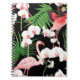 Seamless pattern, background with tropical plants, flowers and birds. Coloured Vintage illustration. Isolated on black background.