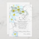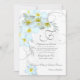 Tropical wedding monogram invitations. White plumeria flowers combine with a leafy flourish for elegant beach wedding paper. The couple's monogram initial is at the top, with the bride and groom inviting guests. Modern wording has full names in script at the bottom.