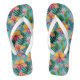 Adult flip flops perfect for all your summer fun, shown here in white with a colourful tropical floral palm print.