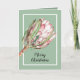 Folded Christmas greeting cards feature a beautiful hand-painted watercolor pink protea floral blossom on a mint green background and your personal greeting and names on the inside. Available as an INSTANT DOWNLOAD, PRINTED or both. MATCHING items in our collection.