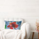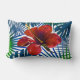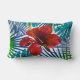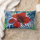 Tropical Red Hibiscus Floral Dark Teal Leaves Lumbar Pillow