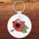 Tropical Red Hibiscus Flower with Green Leaves Keychain