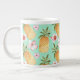 Tropical retro print on mint background large coffee mug