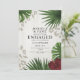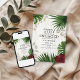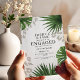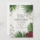 Célébrez le futur M. et Mme avec ce faire-part de fiançailles tropical audacieux et magnifique. Avec des feuilles de palmier vertes luxuriantes, une fleur d'hibiscus rouge frappante et des accents d'impression léopard doux, c'est le mélange parfait d'élégance exotique et de glamour moderne.
