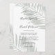 Le faire-part de mariage feuille de la sauge tropicale verte présente de beaux palmiers verts et un arrière - plan blanc propre.