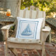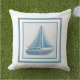 A Beautiful White And Blue Outdoor Accent Throw Pillow Of A Sailboat In A Light Grey Centre.