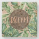 Tropical sandy peach green leaves glitter dream inspiraitonal quote on chocolate brown circle (image of glitter)