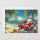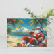 Bring sunshine and humour to your holiday greetings with this fun Tropical Santa Christmas card! Featuring Santa Claus lounging on a sunny beach in his red suit, surrounded by palm trees, ornaments, and wrapped presents, this vibrant design is perfect for those who celebrate Christmas in warmer climates or just love a tropical twist. Great for sending warm wishes with a side of humour, this flat holiday card is sure to stand out. Perfect for beach lovers, snowbirds, and fans of unique Christmas cards. Blank on the back.