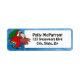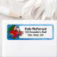 These colourful Scarlet Macaw address labels have a cartoon drawing of the parrot inside a blue circle, with a tropical palm tree behind it. One of the bird's wings is outstretched. The species name is printed at the bottom. Unique Scarlet Macaw products for parrot lovers.
