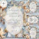 Embark on a journey of elegance and tranquillity with our exquisite wedding invitations adorned with soft watercolor clusters of seashells in a mesmerizing palette of ocean blue, cream, terracotta rust, beige, tan, and blush pink. The gentle hues dance gracefully against a soft white oval blur, providing the perfect backdrop for modern-style text that effortlessly captures the essence of your love story. With the delicate balance of captivating design and readability, these invitations set the tone for a celebration as unique as your bond. Turn over to reveal the enchanting seashell backdrop once more, completing the harmony of design. Invite your loved ones to join you in celebrating your special day with invitations that evoke the serenity and beauty of the seaside. Created by Simply Farmhouse Press.