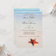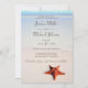 This wedding invitation features elegant script on a soft tropical beach background with a starfish at the base of the invitation. The text can be personalized by editing the text boxes. Designer for you be Evco Studio © at Zazzle.