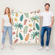 Bright tropical pattern blanket featuring palm trees, surfboards, citrus slices, flip flops, and fruity drinks in a fun summer-inspired style. Ideal for beach lovers, surfers, vacation fans, and anyone who loves colourful tropical aesthetics.