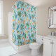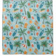 Bright tropical pattern shower curtain featuring palm trees, surfboards, citrus slices, flip flops, and fruity drinks in a fun summer-inspired style. Ideal for beach lovers, surfers, vacation fans, and anyone who loves colourful tropical aesthetics.