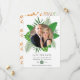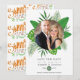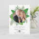 Tropical watercolor foliage aloha beach wedding save the date photo announcement card customizable to your event specifics. Should your names look a bit off-centred when entered, "Click to customize further" (the blue link at the bottom of "Personalize this template") to easily adjust in the design area.