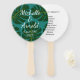 Elegant tropical palm leaf beach wedding ceremony program order Hand Fan . Add your own personalized wedding ceremony itinerary timeline schedule. Classy script typography template for couple getting married and guests. Turquoise blue or custom colour. Personalize with name and order. Monstera palm leaf pattern. Great for summer or destination wedding in exotic climate.