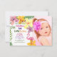 Colourful, bright, adorable, tropical summer Birthday invitation with custom photo and watercolor flowers.