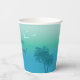 Serve drinks in cool tropical style with this aqua blue paper cup, designed by Destei. Two blue palm tree silhouettes rise against a soothing aqua gradient sky, while three birds fly across the sky. Perfect for birthdays, beach parties and summer celebrations, this cup brings a tropical vibe to any gathering.