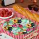 Great accent for an outdoor summer party. Bright colors, vibrant floral design