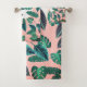 Tropical Summer Pink Green Leaves Sunset Pattern Bath Towel Set