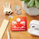 Tropical palm trees, surfboard, beach hut, and flying seagulls under a bright summer sun - all against a vivid gradient background of red, orange, and yellow. Customize this design to make it truly your own.