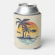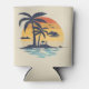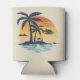 Retro style tropical summer sunset scene illustration with palm trees, clouds, birds and sea decoration