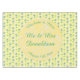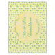 There is a yellow circle with white marbled patterns on it which contains customizable text so you can personalize this design.