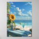 Escape to paradise with this tropical sunflower beach wall art, featuring a bright golden bloom set against a serene ocean backdrop. With coastal tones, a rustic turquoise table, and relaxed vacation vibes, this piece brings warmth, sunshine, and tranquility into any space.