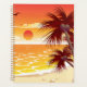 Stay organized and inspired with this tropical sunset spiral planner. The cover features a brilliant graphic of palm trees against an orange sky, providing a peaceful escape every time you sit down to plan your day. Whether you are tracking work tasks, school assignments, or vacation dreams, this planner brings a touch of exotic nature to your desk. It is a great gift for students, professionals, and organized travelers who appreciate high-quality vector art.