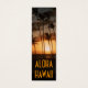 Photo of a scenic sunset with palm tree, taken at Waikiki Beach, Hawaii. You can replace the words "Aloha Hawaii" with your own message, and on the backside insert your name or change (or delete) text.