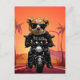 Tropical Sunset Motorcycle Ride Postcard. Cute rebel bear riding a motorbike.