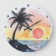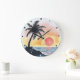 Tropical Sunset Ocean Scene with Palm Trees Large Clock