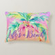 This accent pillow is truly beautiful! Tropical shades of an island sunset is a summer staple. Add a colourful palm tree and your name or message and it becomes the most beautiful beachy outdoor accent. Multicolor soft water colour pastels.