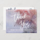 This tropical sunset thank you postcard is perfect for a destination or beach wedding. The design features a stunning pink, purple and blue watercolor sunset complete with a palm tree blowing in the breeze. Personalize the front of the card with a short message. Personalize the back with a longer thank you message. Alternatively, leave the thank you message template section on the back blank to hand write a thoughtful personalized note on each postcard after they arrive. These postcards can be used for the bridal shower, wedding, or any special event.