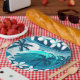 Tropical surf wave with palm trees paper plate