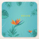 Tropical Teal Blue Green Palm Monogram Belize Square Paper Coaster