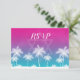 A tropical themed Bat Mitzvah response card. Shown in aqua blue and pink.