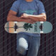 Tropical Teal & Orange Palm Tree Sunset Custom skateboard, with customizable text