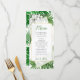 Give you wedding an elegant touch and let the guests know what's on the menu with this tropical themed wedding menu feature palm leaves and white flowers.