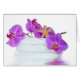 Bold pink orchids with starfish on a stack of white towels.