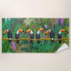 Whether you're at the pool at home, on the beach or on a cruise, this cool tropical design beach towel will look great and keep you comfy. Featuring the original fine artwork of Toco toucan birds in the jungle by designer and wildlife artist Carolyn McFann.