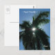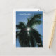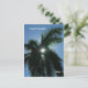 Photograph of a Palm Tree with the sun shining through the fronds, displayed on a Postcard.