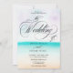 Tropical turquoise beach ombre calligraphy wedding invitation