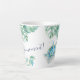 Add tropical island style to your home with my witty latte mug featuring my original hand painted watercolor sea turtle and monstera palm leaves in shades of blue, green and white. The words Seas The Moment are set in hand lettered script typography in navy blue. Personalize the words to Seas The Day or however you like. Makes a perfect holiday gift under $25 for the marine wildlife lover in your life. Watercolor Artwork by artist Victoria Rigali. To see more designs, visit Do Tell A Belle on Zazzle