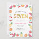 Organisez une soirée tropicale de 7e anniversaire pour votre petit ! Cette adorable invitation à l'anniversaire rose fruité présente des fruits aquarelles comme des ananas, des pastèques, des oranges, des cerises et des fraises. Tous les détails, y compris (sauf l'âge), sont personnalisables. Autres âges également disponibles dans cette collection, voir ci-dessous...